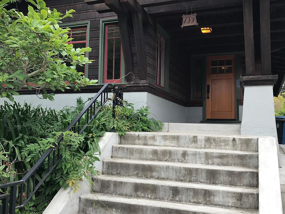 Sunny two bedroom brown shingle 1906 craftsman bungalow. Remodel in 2007 created lovely open floor plan joining kitchen and dining room; the full bathroom completely renovated incorporating clawfoot tub and tile floor with luxurious radiant heat. Master bedroom has an attached sunroom suitable for baby or office, and a half bath. Lots of great craftsman details, working fireplace, and O'keefe and Merritt stove. Original wood floors throughout. Additional features include laundry room, backyard deck, solar power and basement storage space. Off street parking. Quiet and green but still highly walkable neighborhood between Piedmont Avenue shops and Lakeshore district. One block to Oakland Rose Garden. Highly rated Piedmont schools district; a short walk thru a park to Beach Elementary! Trash, unlimited data fiber internet, and electricity included: $200/mo value.