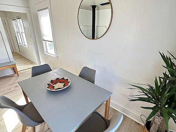 This beautiful beach cottage is the perfect seaside home, located in the historic beach town of Samoa on the northern peninsula of Humboldt Bay. With rare ocean views out the front window and located just a short 5 minute walk away from Samoa beach on a developed trail right out the front door, this location is truly one of a kind. Recently remodeled with modern finishes and appliances, this cozy home is a true gem. The roomy interior is 820 square feet, with a lot size of 3,384 sqft. There's a private back yard, which backs up to a green belt, providing a peaceful retreat, while the modern, vibrant, beachy interior provides the ultimate in comfort and style. Inside, the kitchen features stunning redwood countertops and all new appliances, making meal preparation a breeze. A spacious dining area and bedroom- both with ocean views, and a comfortable living room with backyard view. A large laundry room is in the rear of the house with brand new washer & dryer for your convenience. The newly installed flooring is bright and fresh, adding to the modern feel of the home and the cottage has been freshly painted. The new heating is baseboard electric and features a cozy wood stove to warm you from the ocean breeze. The cottage is located at the end of the neighborhood, beach side, offering the ultimate in privacy and tranquility. With just two cottages on its street, it one of the most peaceful locations in the area. Perfect for professionals, this cottage is conveniently located 3 miles from the town of Eureka and 8 miles from Arcata. St Joseph Hospital is only 5 miles away and Mad River Hospital is 4.6 miles away. Cal Poly is 8.5 miles, College of the Redwoods is 11 miles. It is also just a short drive away from breathtaking hikes in the nearby redwoods, farmers markets in Arcata, and many of the other unique offerings of Humboldt County. Overall, this beach cottage is the perfect blend of convenience, comfort, and style. Whether you're looking for a relaxing beach getaway or a forever home, this rental cottage is the perfect choice.