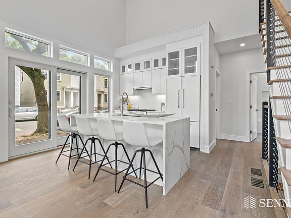 Introducing 154 Thorndike Street, a detached luxury condominium located in East Cambridge. This rental property greets you with towering cathedral ceilings and a welcoming modern design. Capturing every square inch, the main living level provides an open kitchen with gorgeous quartz countertops, white paneled Fisher & Paykel appliances, and a sun drenched living area featuring a gas fireplace. Fitted with wide plank wood flooring, the main living area flows out to an exclusive private patio. Tucked in the rear of the home you'll find a bedroom and full bathroom to enhance the main level. An exposed staircase moves you to the second level primary suite with a private balcony and hosts an ensuite bath with radiant heated flooring. The lower finished level hosts a third bedroom, full bathroom, and an open media space w/ washer/dryer hookup. The home is pre-wired for renewables. Easy access to Lechmere and Kendall Square, you'll enjoy all the perks of city living with privacy and style! Street parking is available with a Cambridge Resident permit. Tenants pay utilities including sewer and water.