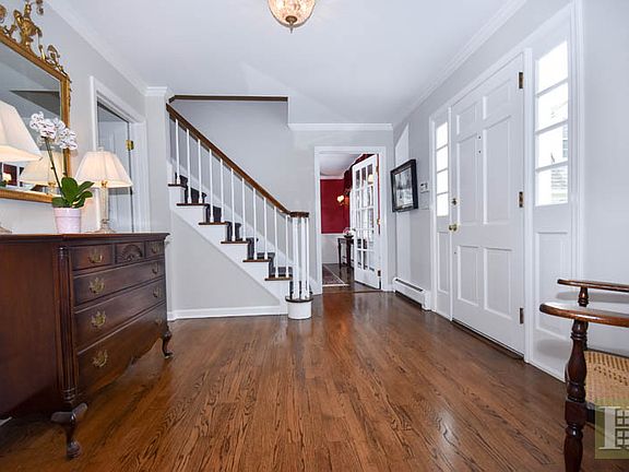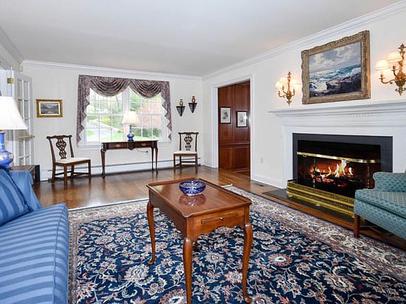 Spacious expanded custom colonial on private, park-like grounds on west side cul-de-sac, with renovated pool and hot tub. This stately and sunny house offers a large cherry-paneled library w/wet bar and powder room, two family rooms, living room with fireplace, dining room and 5 bedrooms including a large, private master bedroom. first floor guest room, huge deck overlooking the pool and yard, and screened in porch with fireplace make this house perfect for entertaining. 4 car garage too!