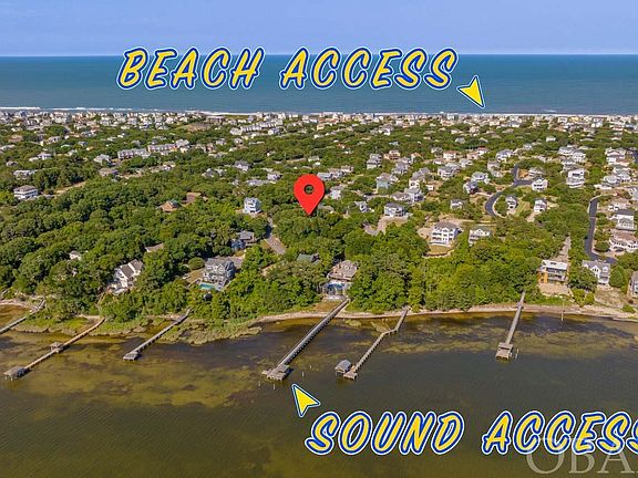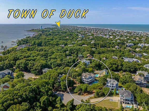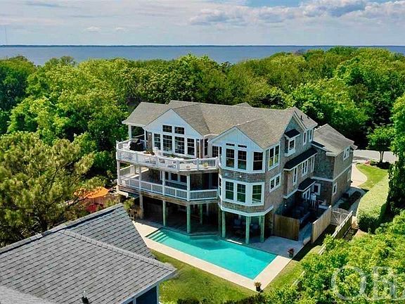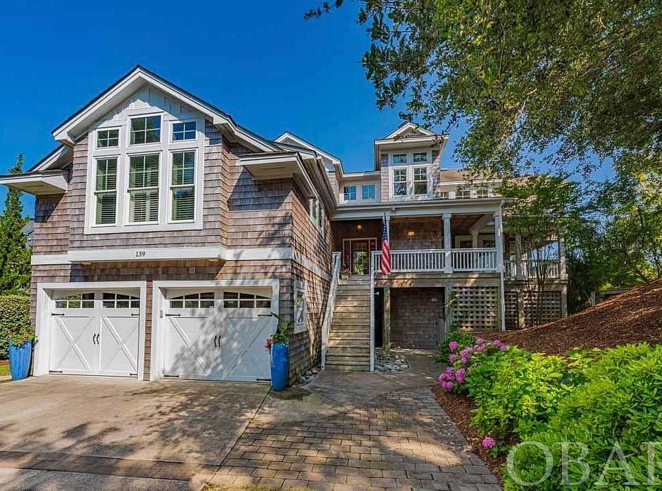 COASTAL ELEGANCE and STYLE showcase BREATHTAKING WATER VISTAS in the legendary seaside town of DUCK, NC where the main attraction is - LIFESTYLE! A CUSTOM BUILT Finch & Co. fortress with high elevation overlooks the sparkling Currituck Sound famous for its MAJESTIC SUNSET skies. Nestled in the lovely sought-after community of Tuckahoe offering hard-to-come-by amenities like BEACH ACCESS with OCEANSIDE PARKING, pool, tennis court, sound side pier with gazebo for crabbing, fishing and water sports. For more seaside fun, you'll be popping into town by car, golf cart or bike to enjoy all of the lovely amenities Duck has to offer, from upscale dining to sunset cocktails, shopping, yoga, town events, music and more! NEVER RENTED the home's design was well curated & perfectly executed featuring FOUR ENSUITE BEDROOMS, one which sleeps 10 with built-in beds and trundles! The home shines through and through with custom UPSCALE FINISHES from floor to ceiling showcasing an ELEVATOR, HEART PINE FLOORS, CONCRETE, GRANITE & QUARTZ COUNTERTOPS, custom PLANTATION WINDOW SHUTTERS, TWO GAS FIREPLACES, CUSTOM CABINETRY, bench seats with storage, IRRIGATION, ALARM & SOUND SYSTEMS, WAINSCOTING, grass cloth wall coverings, landscape lighting and more. The Great Room's open-concept floor plan is delightful for entertaining a crowd and guests and flows beautifully to a most charming screened-in porch with 2nd gas fireplace, the favorite spot for coffee, wine & cocktails as the sun gently settles into the horizon. WATER VIEW DINING Room and well-appointed Kitchen features a concrete-adorned island with seating for four, Granite countertops, stainless steel appliances including built-in 36" Thermador fridge, gas cooking, COFFEE & WINE BAR with two drink coolers and a walk-in Pantry to be envied. Adjacent to the kitchen you'll appreciate the elevator's ideal location for transferring provisions from car to kitchen and a lovely oversized Powder bath. The home's mid-floor features a welcoming Foyer, custom office niche, an abundance of closet storage & 3 Bedroom Suites. Lovely room & bath finishes throughout with custom ceramic tile, SOAKING TUB, dual vanities and his/her WALK-IN CLOSETS. An enormous west side covered deck with additional water views is sensational for lounging or reading just beckoning for daybeds and hammocks to rest the day away! Continue the party on the ground floor in the MEDIA/GAME ROOM boasting a large KITCHENETTE with wet bar, ice maker & microwave, a space which could easily be converted to an In-law suite and opens to the rear yard, an entertaining oasis! You'll fall in love with the lushly landscaped outdoor space featuring a CUSTOM SALTWATER POOL, TRAVERTINE POOL DECK added in 2013, expansive OUTDOOR KITCHEN & BAR, concrete-topped ISLAND for watching the game, a fridge, and more. Additional bonus features are the raised garden beds, spacious outdoor shower & extra storage spaces for all of those beach items, bikes and water toys! Additional notes: 3M anti-glare coating on windows, LED lighting with dimmers throughout. Clopay high wind reinforced garage doors, 3 Trane Heat Pump units with three zones for maximum efficiency and comfort. The home's ROYAL WATER VIEWS are protected thanks to the community-owned adjacent lots! SOLD FURNISHED however Sellers are still deciding on which furnishing/art items they will be taking with them. Replacement furnishings will be made clear on a Bill of Sale to be provided before 6/22**. A list of recent improvements include: New HVAC 2022, Thermador 36" built-in fridge 2022, New Lighting, Ceiling Accent Beams, Built-in Bunk Room, Garage Shelving, Landscaping & Irrigation Zones added, Exterior retaining wall improved, New Hot Tub 2022, New Tvs 2021, Washer & Dryer 2023, Marine-grade bluetooth audio system. Don't miss all you've dreamed of in Duck, the one you've been waiting for! For 3D Virtual Tour copy and paste the following link: https://unbranded.youriguide.com/139_tuckahoe_dr_w_duck_nc/