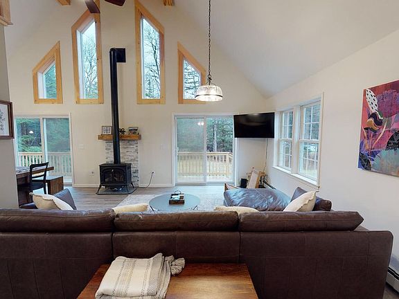 Welcome to this modern all-season retreat nestled in the heart of Vermont. This strategically located home is just a 10-minute drive from the K1 Lodge at Killington Resort and 2 minutes from Pico Mountain Resort. It's also steps away from the Appalachian Trail, making it your perfect base for year-round activities. Enjoy shopping and dining or experience Killington and Rutland's vibrant nightlife. The home features an expansive wrap-around deck with a BBQ grill, perfect for summer cookouts. Relax in the private outdoor hot tub after a long day of fun activities. The open floor plan includes a modern kitchen with granite counters, a dining area with plenty of seating, a spacious living room with a cozy propane fireplace, a large screen TV, soaring cathedral ceilings, and large slider doors to the deck, perfect for evenings of star gazing. The home is designed with little luxuries to make your stay more comfortable, such as heated bathroom flooring to keep you warm during chilly mornings. The modern kitchen is equipped with granite counters, providing a perfect space for cooking and dining. Strategically located just a 10-minute drive from the K1 Lodge at Killington Resort and 2 minutes from Pico Mountain Resort, this home is also steps away from the Appalachian Trail. It's an ideal base for year-round activities, with opportunities for shopping, dining, and experiencing the vibrant nightlife of Killington and Rutland. Pets are not permitted in this home. The home includes a dedicated loft office space, ensuring you stay connected even when not on the slopes.