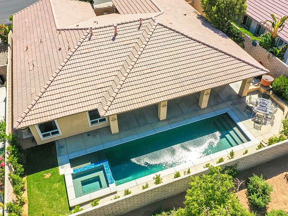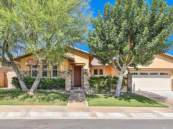 Welcome to the exclusive gated community of Tuscany, built by GHA, deserts' premier builder. This home is a Sienna Collection, Plan 2R, 3 bed and 2 baths. Home was recently updated and ready for you to move in!!! Brand new salt water pool and spa with water feature, newly painted interior, crown moldings, new LG Stainless steel appliances, 48 new trees, including fruit trees, and more!! Backyard is the perfect place to entertain with a designer outdoor fireplace and dining area. Tile flooring throughout and new carpet in bedrooms. Home also backs up to an open greenbelt. Tuscany features, community pool/spa, dog park, greenbelts and playground. LOW HOA DUES and fee simple land, no land lease. WHAT I LOVE ABOUT THIS HOME: Well built, 3-bedroom plus den/dining flex room, newer home, updated, with a great floor plan in an established community. Incredibly private, peaceful space to call home. Really a must see.