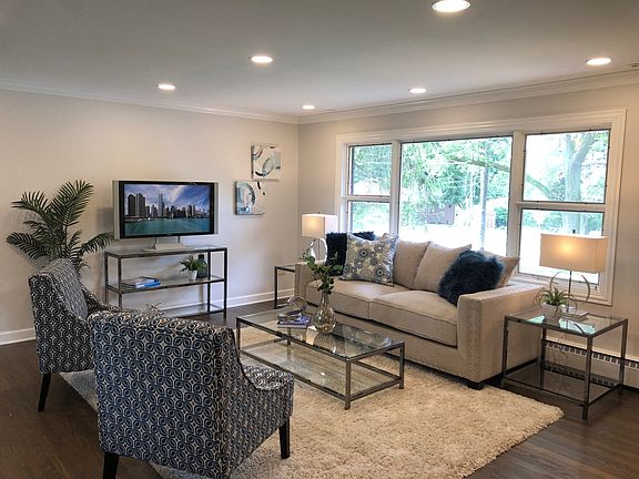Brick walkway leads to recently rehabbed (2019) all brick ranch in the village! Over 2000 sq. ft. of living space, including the finished basement and sun porch. Open floor plan! Kitchen with all new white soft close cabinets with pull out shelves, quartz counters, new stainless appliances, faucet, sink, garbage disposal & light fixtures! Hardwood flooring throughout main level, just refinished 2019. New copper plumbing throughout house 2019 New wiring and electrical in main living areas 2109 New insulation 2019. New hot water heater 2018. Freshly painted inside and out. Three bedrooms on main level and one in basement. Some new windows, 2 car attached garage with brand new Chamberlain garage door opener, sun room (enclosed porch), finished basement with family/rec room, 4th bedroom, freshly remodeled full bath 2019, large tiled floor laundry room. Roof (2005) Soffits (2006). Walk to train, downtown, schools. Corner lot, too! Wow and it is all freshly updated and just waiting for you!