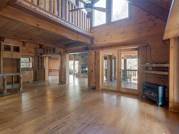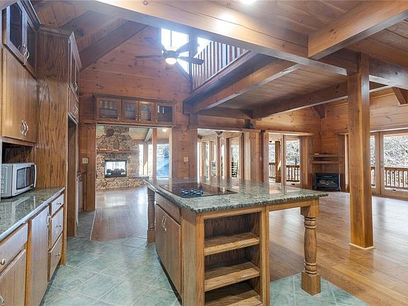 Appraisal completed! A Thomas Kincaid painting come to life! This beautiful cabin sits on 26.36 acres in the North GA mountains of Ellijay! It boasts tongue and groove soaring ceilings with large beams and huge panoramic view windows. The home is surrounded by thousands of wild rhododendron and a rushing mountain stream that is filled with brook trout. The town of Ellijay is a short drive away. This cabin has everything you need to get away from it all. It boasts an accessible entrance from the bottom floor with an interior elevator that stops at all three floors. There is a whole house backup generator for peace of mind knowing you will always have power. There is a large, covered outdoor kitchen with a huge stone fireplace and stainless grill. There are two laundry areas. There is simply too much to list. Investors this would be a fabulous property to add to your portfolio! Short term rentals in the area stay rented year round!