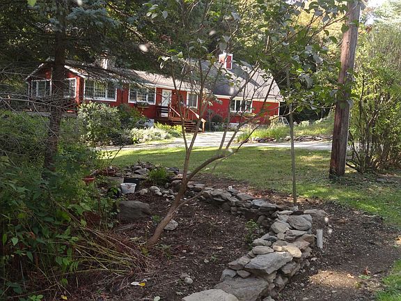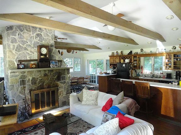 Secluded but not isolated, this fabulous 1.9 acre 2 bdm/2 bath + library/den,four season one-level country home is a perfect full-time residence or weekend getaway. Five miles from Pawling Village/Metro North, in a private community with deeded lake for swimming or row-boating is reminiscent of On Golden Pond. Area surrounded by protected West Mountain State Forest. Hundred years' old stone wall guides you to this double barn-like home with a semi-circular driveway. A impressive stone fireplace anchors a great room with exposed beams, 12' vaulted ceilings and an open kitchen with yards of cabinets surrounded by energy-efficient windows. Breakfast bar, kitchen peninsula and French tile backsplash. Interior heated storage loft. Hardwood floors throughout the home. Bring the outside in with a new wraparound 576 sq. foot deck/carport, overlooking terraced gardens of daylilies, abundant daffodils & perennials. Your own babbling recirculating water feature sounds like a naturally flowing stream. Walk past the guest bedroom, full bath and den through the heated interior breezeway and into a luxury master suite with a 3-sided fireplace, twin master closets under the 14' beamed-vaulted ceiling. French doors lead to a flagstone patio. The windowed en-suite bath has dual sinks, a roomy, windowed steam shower and pocket door adding extra privacy to the W.C. Historic stained glass adds a special touch to the twin clerestory windows when sunlight sparkles through. Extra-wide doors, sinks and showers adaptable to accommodate all abilities.