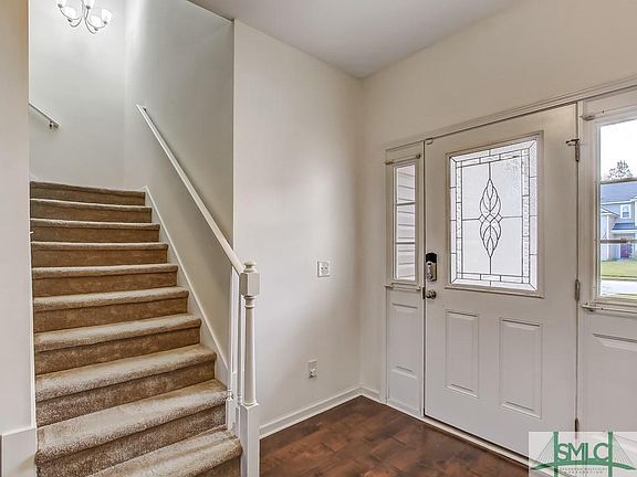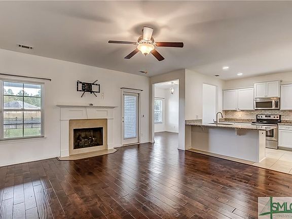 This outstanding move-in ready 4-bedroom, 3 bath home with expansive screened porch and lagoon view is the one you have been waiting for! Interior upgrades include hand-scraped wood floors in the entry, living room and dining room, a stunning fireplace and planked interior doors. Fall in love with huge breakfast bar, granite countertops, tile backsplash and stainless-steel appliances in the kitchen. Downstairs offers a master suite with tray ceiling, separate sitting area, huge double vanity, garden tub and a stand-alone shower all trimmed out in gorgeous tile work. Two more bedrooms are located downstairs and a fourth bedroom and bonus room with closet and full bath are located upstairs. Note the new low humidity, high efficiency, dual-zone HVAC installed in 2019 and the screened porch, retractable awnings, and buried gas tank with hose for the grill. Community amenities include a resort style pool, splash pad & tennis courts- all conveniently located near I-95 and Pooler Pkwy.