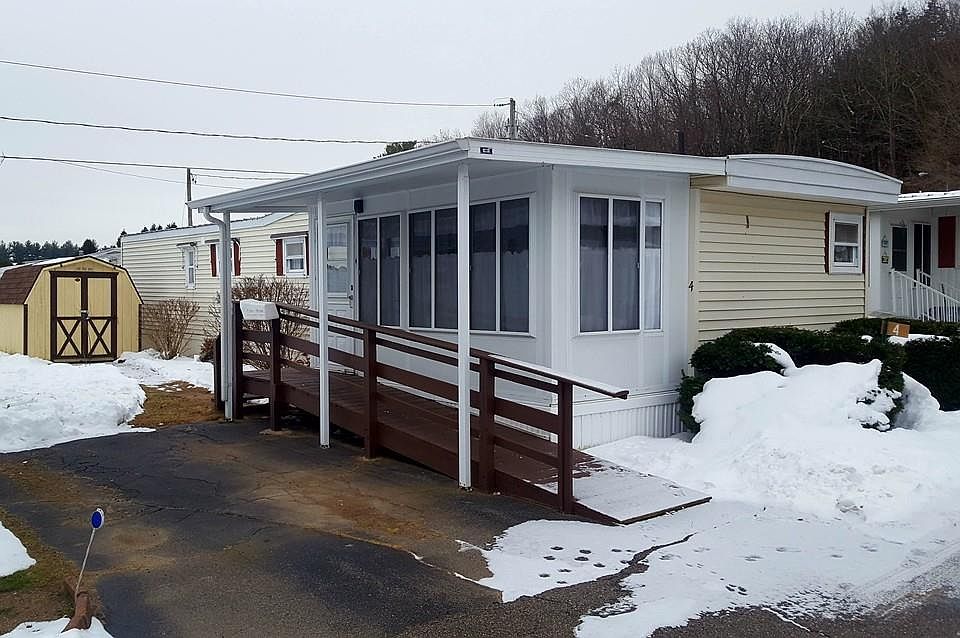 Relax in this well maintained community of manicured surroundings. Convenient to highway with easy carefree living. Move right in and enjoy this 5 room, 2 bedroom with oak cabinet kitchen with rollout storage, cozy enclosed porch, and handy storage shed. Retirement at its Best !!