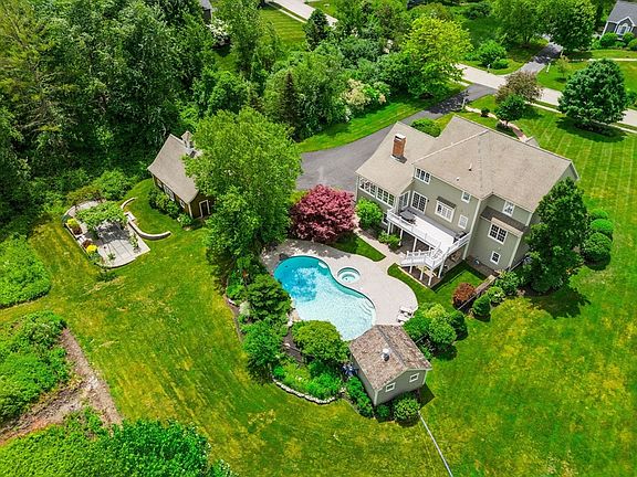This exceptional property on Wharton Row is a rare gem,offering a 6-car garage and heated pool,surrounded by conservation land and private access to a 20 acre Ames Meadow parcel. Meticulously crafted,it boasts soaring ceiling heights on all levels.Open-concept floor plan flooding the 1st floor with light.The center island kitchen connects effortlessly to the FP family room,4-season room,and formal living and dining areas.A private office with french doors and ½ bath complete 1st floor. Upstairs, find 4BR’s and 2FB’s, including a primary suite with 2 closets and a spacious bath.The LL offers versatility with a prep area,3rd FB, bonus room, and a unique soundproof studio.Outside,enjoy the saltwater heated gunite pool ,inviting patio, charming pool house,and lovely plantings.A detached 3 car barn with loft adds charm and functionality.Nestled in a tree lined neighborhood with sidewalks, this premier Groton property offers an unparalleled blend of neighborhood and comfort.Truly exceptional