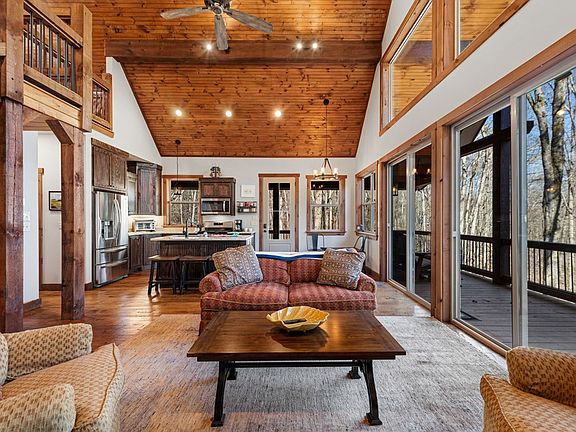 Discover your perfect mountain retreat where modern comfort meets rustic charm in this delightful two-bedroom, one-and-a-half-bathroom home. Just a scenic drive from downtown Blue Ridge, this property offers the ideal balance of peaceful seclusion and convenient access to local amenities. Step inside to find soaring cathedral ceilings that create an impressive sense of space and airiness throughout the open floor plan. The thoughtful design seamlessly blends contemporary features with mountain cabin aesthetics, creating a warm and inviting atmosphere that feels both sophisticated and cozy. The heart of the home flows effortlessly from room to room, making it perfect for both relaxing evenings and entertaining guests. Large windows throughout capture abundant natural light while showcasing the beautiful surrounding landscape. The spacious crawl space provides excellent storage solutions, while the paved access ensures easy year-round accessibility. Outside, unwind in your private hot tub after a day exploring the nearby Toccoa River or hiking mountain trails. The tranquil community setting includes access to a stocked pond, perfect for fishing with the family, enjoying morning coffee, or quiet evening reflection. This quiet neighborhood offers the serenity you're seeking while keeping you connected to Blue Ridge's charming downtown district with its local shops, restaurants, and seasonal festivals. For golf enthusiasts, Old Toccoa Farm is only a few miles away. The location provides easy access to grocery shopping and entertainment, making daily life both convenient and enjoyable. Whether you're seeking a full-time residence, weekend getaway, or vacation rental investment, this property delivers mountain living at its finest. The combination of modern amenities, rustic character, and prime location creates an opportunity that's both practical and enchanting.