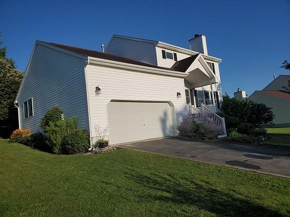 Immaculate, well-maintained, bright & cheerful 3 bed, 2.5 bath home in South Hill neighborhood community. 2 miles from downtown & 1.2 miles from IC. Home feats an updated kitchen w/ adjoining cathedral ceilinged Great Room & lots of natural light. Sliding glass doors lead from sunny kitchen to deck in private back yard w/ mature trees, raised garden bed & fire pit. Add'l living/dining room w/ wood burning fireplace & floor-to-ceiling windows adjoins a separate office/study. Formal entry and 1/2 bath on 1st floor rounds out this flexible floor plan which lets you create a living space that works for you. Master suite features cathedral ceilings & beautiful valley views. 2 beds & additional full bath complete the 2nd floor. Full basement, dry-walled w/ framed room for storage or other use. Great space for kids or additional living. Beautiful landscaping surrounds the home. 2 car attached garage w/ room to store your seasonal equipment. A great place to entertain friends & family alike.