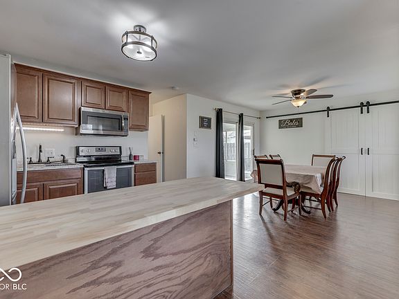 Lovely 3 BEDROOM + 1.5 RANCH in Whiteland! 1,107 Sq. Ft. ~ NEW AC 2022 + NEW Gas Water Heater 2022 + NEW ROOF 2023! Features: Fresh Interior Paint + Beautiful Laminate-Hardwood Floors; GREAT ROOM; Large, Open Eat-In KITCHEN: Breakfast Bar + Stainless Steel Appliances + Ample Cabinet Space; Large DINING/BREAKFAST ROOM w/Sliding Doors Leading to AWESOME Screened-In Patio; Perfect LAUNDRY CLOSET w/Sliding Barn Doors; PRIMARY BEDROOM w/2 Closets + 2 Additional Bedrooms - Both w/Laminate-Hardwood Floors; Exterior: Big Fully-Fenced Backyard to Enjoy: Mini Barn + Great-Size Screened-In Patio! Quiet Street ~ Desirable Location in Whiteland ~ Close to Everything!