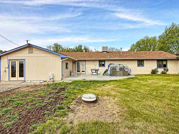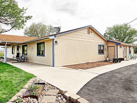 Amazing views in every direction, this beautifully updated 2720 square foot ranch style home with 4 bedrooms & 2 bathrooms sits on almost 3 acres. Irrigated fenced pasture is approximately 1.5 acres plus additional small pens fenced for livestock. Expansive yard with sprinklers. Plenty of room to build a shop, a barn or add a garage. NO HOA! Several sheds for additional storage. Recent updates include newer roof, gutters, exterior paint, and asphalt driveway. This property is a great value and exactly what you have been looking for!