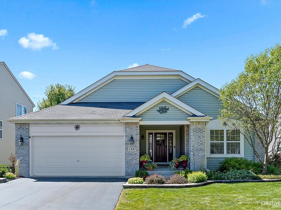Exquisitely appointed and well-maintained 4-BR RANCH home with over 3,000 sq. ft. of finished living area. Owners have LOVED this property and neighborhood. Upon entering you will be impressed with the 12 foot ceilings and the open floor concept. More recent updates include kitchen with SS applicances, 42" soft close cabinets with under cabinet lighting, updated bathrooms and flooring. Primary bedroom with vaulted ceiling, full bath and WIC with custom organizers. LR and FR layout can easily be reversed based on homeowners preference. Over 1500 sq ft of finished basement space include rec room with bar, bedroom/office, and full updated bathroom offers flexible and multi-generational living options. Fenced back yard is like a private oasis. The Cambridge Lakes Clubhouse Community is fantastic! It includes a pool and splash pad, workout center, party/meeting room, miles of walking/biking trails, skateboard park, several baseball diamonds, basketball court, soccer fields, playgrounds, and a STOCKED LAKE with pier for fishing enthusiasts. Cambridge Lakes Charter School is only 3 mins away. Close to I-90, Rt. 20, Rt. 72 and Rt. 47.
