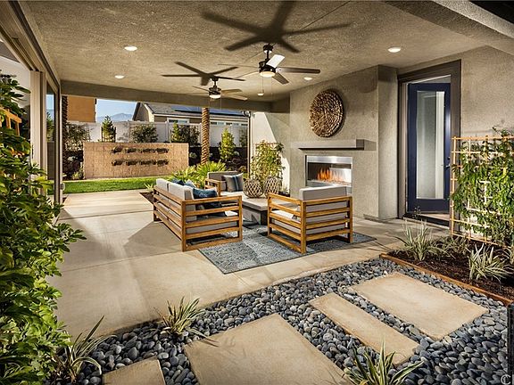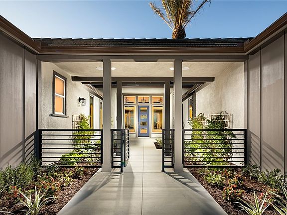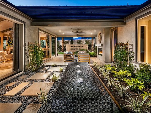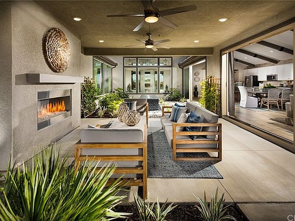 MODEL HOME FOR SALE!! This award-winning and extraordinary floor plan offers a unique design. Featuring 4 bedrooms, 3 bathrooms, 3-bay tandem garage and approximately 3,029 sq. ft. of living space, this home has so much room for the whole family. This single story home features a spacious open-concept living area featuring a great room for family gatherings and front and back courtyards for relaxing on Sunday mornings. Off the great room is the dining area and gourmet kitchen with large center island. The covered patio has stacking doors and and a 51 inch outdoor linear fireplace which seamlessly flows into the indoor space, making it a great home for entertaining friends and family. The kitchen features painted Shaker door cabinetry with Luminesce Quartz counter tops, GE Stainless Steel Appliances with built-in refrigerator, and walk in pantry. Located on the opposite side of the home, find the spacious primary suite complete with spa-inspired bath featuring a walk-in closet and den with wet bar. This home has upgraded flooring throughout with professional landscaping in the front and rear yards. Solar is also included. A must see! Home ready for move-in December 2020.