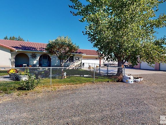 This is a must see: site-built home on 10 acres close to town! 4 bed, 2.5 bath with attached and detached finished and insulated 2 car garages, 2 car carport, several animal shelters and pens, chicken coop, well shed with storage and another shed with a Conex attached on the other side for even more storage, equipment shed to store those toys, gazebo, firepit, regulation size horseshoe pits, outdoor smoker, covered sand box and play set stays, also a covered patio out the back door and a large uncovered, patio. Stucco exterior, tile roof, mature trees (also fruit trees 1 peach, 1 apple and 3 plumb) and landscaping, fully fenced, sprinkler and drip system. Inside, the kitchen has a new stove/oven and built-in separate oven, stainless steel appliances, plenty of cabinet space, eat in breakfast nook as well as a formal dining room, breakfast bar, tile backsplash and pantry. This home has a Large formal living room with a wood stove, split bedroom floor plan with 3 of the 4 bedrooms having ceiling fans and one guest bedroom as well as the master have walk in closets. The master bedroom is large with a oversized shower and jetted tub. Guest bath was updated about a year ago. Water heater is about 2 years old.