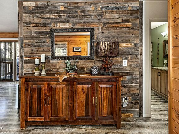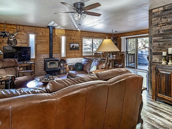 Charming one level Mountain Retreat in the highly desirable Animal Hill area of Pinewood close to the entrance to the National Forest. Enjoy this peaceful setting surrounded by towering ponderosa pines with over 600 square feet of outdoor deck, ideal for entertaining. The private fenced rear yard includes a large shed and private back deck with access off both the dining area and primary bedroom. Open concept great room—plus a wood-burning stove for those cool mountain nights. The owners recently installed an Energy Efficient Mini-Split system for comfortable year around heating and cooling. The kitchen has ample storage, a breakfast bar, and stainless appliances. Primary bedroom with bath and large walk-in shower. If you're looking for a cabin that is move-in ready, then look no further.