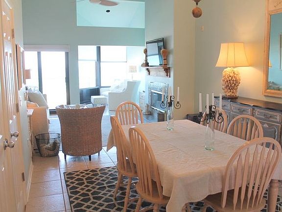 This is an incredible gulf view Palm Beach Club. Two bedrooms and two baths. Immaculate and turn key. Galley kitchen, Living and dining room have a view of the gulf. Two balconies one off the living room and one off the master bedroom. Fireplace in the living room. Master bath has a whirl pool tub, where you can take a bath and look at the water. This complex has a pool and it located on the sound and across the street from the gulf. Covered parking with storage. Tile floor and fully furnished all you need are your clothes.