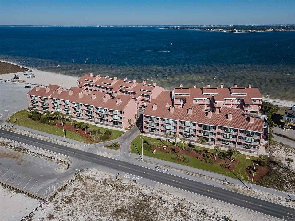 INCREDIBLE GULF VIEWS from your balcony and living area! Welcome beach lovers to your new home on beautiful Pensacola Beach! The unobstructed views of turquoise gulf waters and sugar white sands beckon you to stay, relax and enjoy. Smartest buy for the money this meticulously maintained condo has lots of SPACE and breathtaking VIEWS. It is well appointed, fully furnished and move-in ready. This unique property is in a small gated community across from the National Seashore, so your fabulous views are forever protected! Enjoy the peaceful sound of ocean waves, relax in the waterfront pool or walk to popular Peg Leg Pete's Oyster Bar. Inside there is lots to love with three levels of tasteful, updated, neutral decor contrasted with bright beach accents.The large open-plan family/dining/seating room has vaulted ceilings, fireplace and gulf-view balcony. The galley style kitchen has stainless steel appliances, custom maple cabinets and granite countertops. There is a prep area with an additional sink, cabinets and wine fridge. Downstairs, relax in the spacious master suite with its private gulf view balcony, king size bed and large closet. Updated bath has jetted tub w/shower, cherry vanity and tile floors. Second and third bedrooms are comfortable and spacious with private baths. There is a new washer/dryer as well as upscale lights, ceiling fans, accents throughout. Sleeps 8 plus. You also have covered, deeded parking for two cars & guest parking. There is also outside storage. Relax around the Bayfront pool. Act now to own your own piece of paradise!