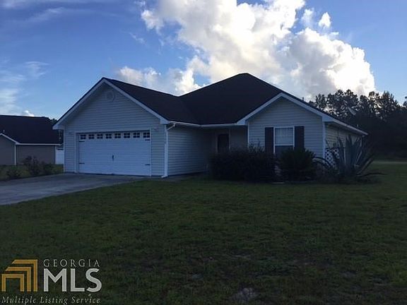 This move-in ready home features a large open dining & living area. This 3 br & 2 bath home, has a master suite w/ double-sinks & walk-in closet and is split away from other bedrooms. Other features include tile flooring w/ laminate wood vinyl in kitchen, living & carpeted bedrooms. (Carpet or vinyl needed in hallways.) Ceiling fans are located in dining and bedrooms. The spacious open kitchen is lovely with black Samsung appliances and nice dark cabintry. Laundry room is off kitchen and in hallway with washer & dryer. The back screened-in patio overlooks a large yard equipped with a shed for storage. Double car garage with remotes. Some landscape TLC needed.