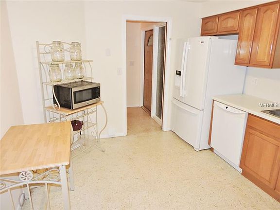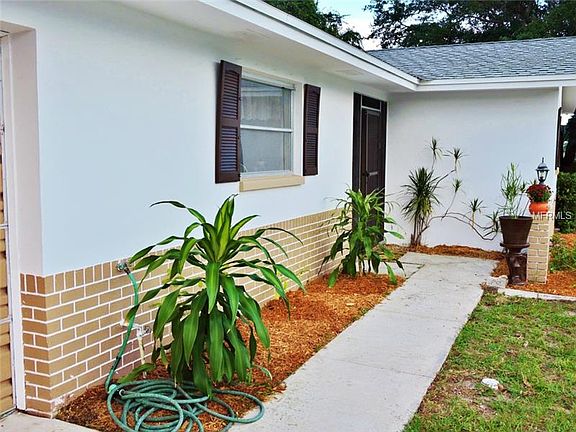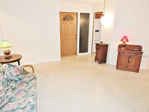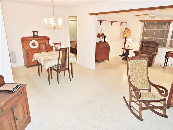 In the market for a solid 2 bedroom, 2 bath block home with unique open floor plan? This Oakbrook Woods home has renewable ivory terrazzo flooring throughout, a large living room, dining room, family room with shelving and even a covered Florida room style patio. The updated kitchen is sure to impress with wood cabinets, solid surface counter tops, side by side refrigerator, dishwasher, stove/oven, disposal and large enough for a kitchen table or butchers block. The master suite features built in lighting, and its own bathroom with new vanity and easy step in shower. On the other side of the house is a hall way leading to a large bathroom with a pedestal sink and a shower/tub combo, a huge linen closet and second large bedroom which can all be closed off with the fantastic pocket door to create another private master suite. The garage is a huge 1 ½ car design that has a washer & dryer included and a side entry door leading to the side yard. The back yard features a beautiful shade tree and is partially fenced for privacy. Call to see today!