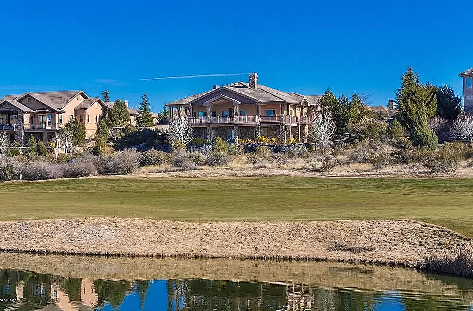 THIS PROPERTY IS OFFERED AS FULLY FURNISHED. Live like royalty in this one of a kind, high quality-built house with stunning views of the lake and the Golf course. Equipped with an elevator to take you downstairs as well as beautiful stairs. Multiple other upgrades include central vacuum, 2 fireplaces, theater room with speakers covering all the house upstairs and downstairs, fire sprinklers, three water heaters. Large Porch and Deck surrounding the front and the back of the house. 3 car garage of more than 950 Sq ft. Spacious finished storage of more than 650 Sq ft. Upper and lower levels fence surrounding the property. Overlooking the 18th fairway and lake of the Prescott Lakes golf course the view extends to Granite Mountain. Breathtakingly beautiful....This house is your dream home.