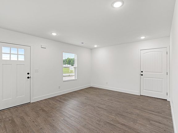 Situated on over half an acre, this 3 bedroom, 2 bath home is one-level living at its finest! As you pull up to the house you have an extra parking pad for additional vehicles or guests and still have garage space. An outbuilding with electricity provides even more storage or tinkering space...you could even covert it into a man cave or she shed! Stepping into the house you enter a combination living/dining/kitchen space with white cabinets, stainless steel appliances, and solid surface countertops. As you walk down the hallway, you'll find two secondary bedrooms with easy access to full bath, a walk-in laundry room with washer and dryer remaining, and the primary en suite. With no carpeted rooms, this house is perfect for pet lovers. A patio out back is perfect for grilling. enjoying some lounging time after work, or soaking in those beautiful fall mornings with a cup of coffee. What are you waiting for? It's time to make this house your home.