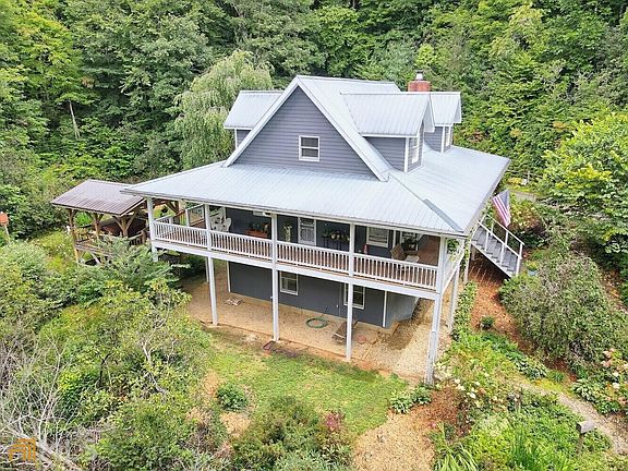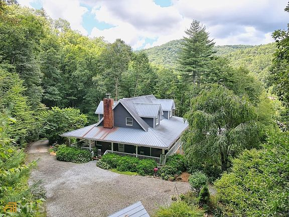 If you're looking for a place to get away from it all, this is it! Imagine driving through the scenic Tallulah River corridor on your way home to this beautiful property located in Tate City, a remote community at the border between Rabun and Towns Counties. Situated on 3.75 acres, the land offers mature hardwoods, intentionally landscaped grounds and the potential to selectively clear trees to expand a sunset mountain view. Upon arrival to the house, you'll find a wrap around porch welcoming you inside. The main living space offers vaulted ceilings and hardwood floors in the living room with an open kitchen complete with stainless steel appliances including a gas range and tile floors. The owner's suite is on the main level and offers a walk-in closet, jetted soaking tub and shower combination along with a spacious bedroom area. Upstairs, enjoy two additional guest rooms, a sitting area and a shared bathroom. On the lower level, you'll find room to expand the living area with an additional bathroom, ample storage space and room to build out another living space. Outside, enjoy soaking up the sunset view from your covered hot tub porch. The grounds are lush with mature and intentional landscapes and gardens. There are a couple of outbuilding, a wood storage shed and an outdoor fire-pit that's perfect for entertaining guests on chilly nights. This area is known for trout fishing, hiking trails and wilderness.