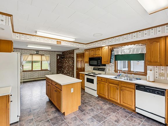 This 4-5 bedroom, 2 bathroom home offers the unique opportunity to have an in-home business or office with great exposure on Route 3. The first floor of the home features a spacious eat-in kitchen, the living room, a bedroom and a bathroom. Upstairs includes 4 additional rooms and a second bathroom. The 'ell' of the home has an entryway, and two additional rooms- one with exterior access. The home also comes with an attached 2 car garage and a full basement for storage. The Dream Shop in the back yard creates additional options for recreational storage, woodworking, and more. Situated on 4.5 acres, the property sits just steps from Tobey's Grocery for added convenience.
