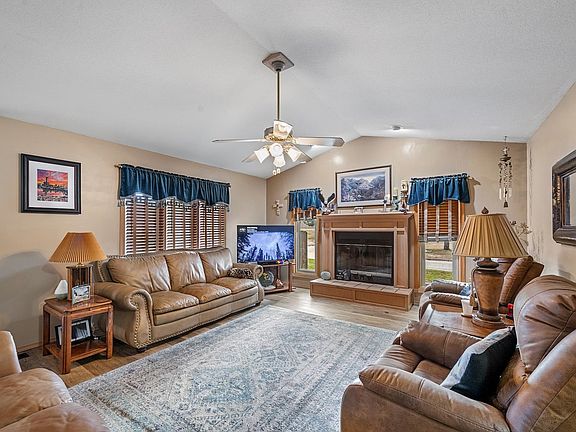 Welcome home to this well-maintained west-side ranch, nestled on a quiet cul-de-sac in the sought-after Goddard Eisenhower School district! Boasting 4 bedrooms, 3 full baths, and over 2,300 sq ft of finished living space, this property is surrounded by mature trees and beautiful landscaping. Step inside to find a spacious living room with vaulted ceilings, a cozy wood-burning fireplace with a gas starter, and newer luxury vinyl plank flooring that extends throughout the main living areas. The chef’s kitchen is a standout with Corian countertops, a stylish tile backsplash, and plenty of cabinet space, including a pantry cabinet. All kitchen appliances are included, making it move-in ready. The primary bedroom offers a generous walk-in closet and plenty of natural light. The ensuite bath features granite countertops, double vessel sinks, and a tub/shower combo. Two additional bedrooms (one is currently used as laundry area) and an updated hall bath complete the main level. The finished basement provides even more space for entertaining, with a spacious family room and plenty of room for a game table. You’ll also find the 4th bedroom with a large walk-in closet and a 3rd full bath featuring tile floors and a standalone shower. There's an additional hookup for a washer and dryer in the basement for added convenience. Step outside to enjoy the shaded backyard, complete with a covered deck, an open deck and nice landscaping, surrounded by a wood privacy fence. The home includes an irrigation well, a sprinkler system, and a two-car heated and cooled garage. New roof and gutters in 2024, brand new hot water heater, new irrigation pump, most new windows on main floor. Newer main level carpet. Conveniently located near shopping, restaurants, grocery stores, and churches, with easy access to Kellogg Avenue (US Highway 400) and Maize Road for quick commutes around the Wichita area. This is a must-see! Don’t miss your chance to make it yours! Call to schedule your own private showing today!!