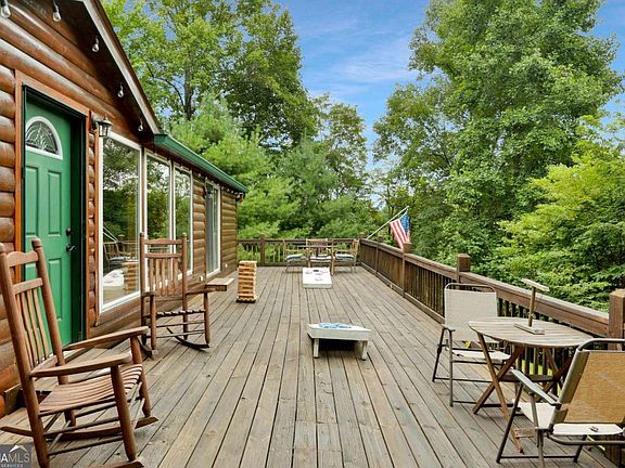 Charming 3BR/2BA log cabin in the heart of Blue Ridge! Close to the Aska Adventure area! Minutes from shopping/dining in Downtown Blue Ridge and only minutes to the Toccoa River, Lake Blue Ridge, and more! Currently in a very successful rental program, excellent short-term rental history! Plenty of room for growth! Would also make the perfect second home! PRIVATE 1.62 ACRE lot! Pine tongue & groove walls throughout the interior! The master bedroom features an ensuite bathroom with a 6'X4' slate shower that is gorgeous! Brand NEW wood laminate floors throughout the entire home! Large windows in the living room and dining room boast beautiful mountain views & stunning sunrises. Remote start gas fireplace for cozying up on those cold nights! Dual fire pits for evening campfires! Wrap-around deck features a hot tub! Year-round mountain views! Brand NEW septic system! Brand NEW master bath! The deck has been expertly updated and reinforced to meet modern standards, offering the reliability and feel of a refreshed outdoor space! Brand new farm-style fence & privacy gate, owners shed & doghouse. This one won't last long! A must see!