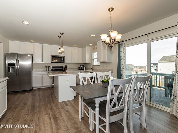 Move right in to this decorator dream house! Today's style and floor plan, offers an outstanding chef's kitchen with huge island and stainless steel appliances, open to family room showcasing a beautiful fireplace. Loft can easily be turned into a 4th bedroom, and easy access to plumbing should you want an attached bath. Living room/sitting room can work great for a at home office. Beautifully decorated - spotless - light bright and perfect location! Sellers hate to leave, but job location requires a move. They've done all the work, including planting many trees and adding great landscaping. English basement offers natural light in basement and rough in for future bath. Deck off kitchen for your enjoyment. No additional expense to finish house, perfect house, just move right in!