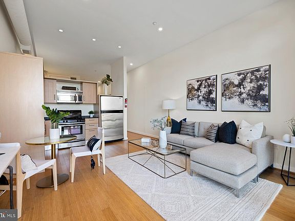 Welcome to this contemporary 1 bed/1 bath bright and airy loft right off of the famous 14th St NW! Entering the home, you’re greeted with an abundance of natural light from the wall of south-facing floor-to-ceiling windows and towering ceilings, and then at night, the loft is well-lit with newly installed recessed lighting throughout. The bath adjacent to the entrance features new glass shower doors, a washer/dryer, and dark tile flooring sure to please the eyes. Up a few steps is the lofted primary bedroom, whose floors were just redone with hardwood and has a sizeable walk-in closet. Under the loft is a pullout drawer for bonus storage. Moving through the home, the kitchen boasts stainless steel appliances, open-facing shelving, and cabinetry. The open floor plan living area leads to the private balcony with views headed south to 14th St. With the winter months approaching, the newly installed HVAC is sure to keep Whole Foods, and several award-winning restaurants. Minutes to the Metro, Logan Circle, Shaw, and downtown DC.
