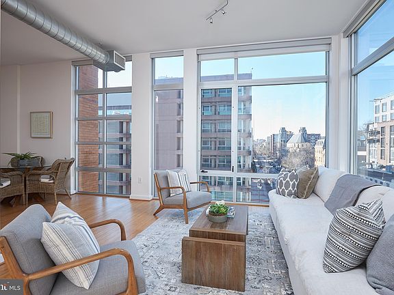 Beautiful corner unit with 13 ft high ceilings and walls of windows at Langston Lofts. This open layout offers bamboo wood floors in the living space, office area, and balcony. The kitchen boasts granite counters, stainless steel appliances, and an island. With in unit washer and dryer, garage parking, and extra storage this unit has a lot to offer in the heart of DC.