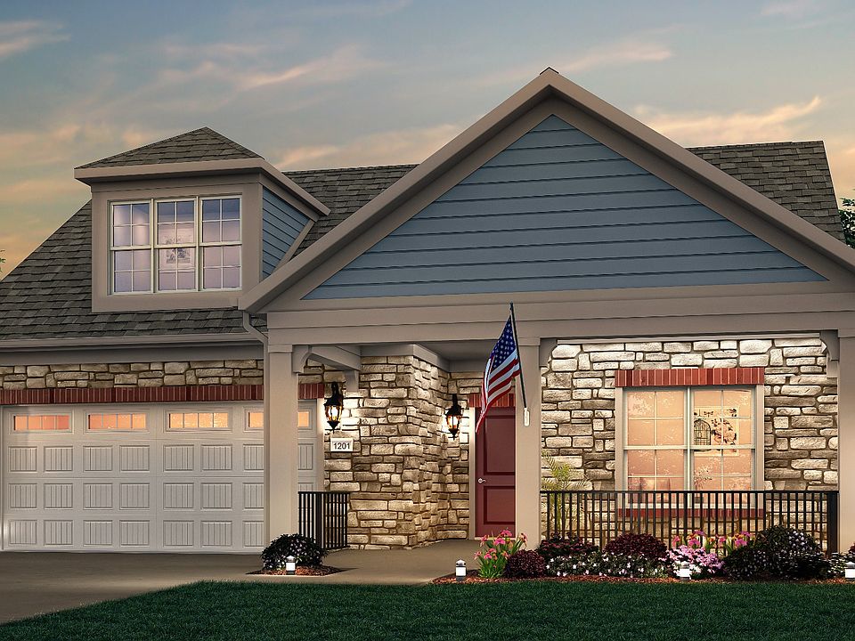 The Portico, part of the American Porch Collection, features a spacious angled kitchen with a large center island offering views to the living and dining room.