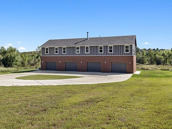 The first floor houses an impressive four-car garage with batted insulation and insulated garage doors, with the flexibility to close off each bay for projects or hobbies. The property is designed for energy efficiency and convenience, equipped with a 160' well, an aerobic septic system, a Generac whole-house generator, a tankless water heater, a water softener system, and a storm shelter in the garage.