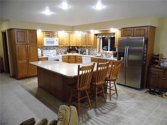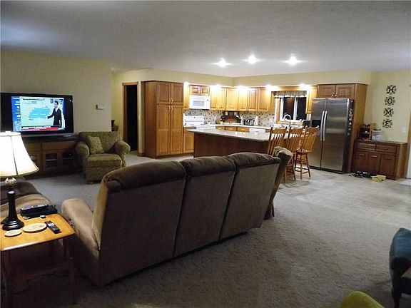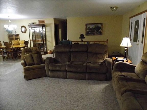 Beautiful 3 bedroom, 2 bath ranch with full basement on 3.3 acres! Built in 2001, this one owner home was built with pride and it shows! In the heart of the home is the huge 29x28 open floor plan family room, dining room, kitchen which is large enough for the sellers 40 guests during family get togethers. The oak kitchen has new countertops & a multitude of cabinets including a large double door pantry & contains an island large enough for 7 bar stools! The many expensive upgrades are evident throughout the home including solid oak doors, 5" oak base trim, 2 3/4" oak casing with rosettes on all corners, 8 foot sliding glass door leading to the back patio, jacuzzi soaking tub & central vacuum throughout the home. Other upgrades include 28" of blown cellulose insulation in the attic, blown cellulose insulation in the walls, Rheem hi-efficiency furnace & air, 30 year Certainteed Landmark shingles, water heater & pressure tank 2 yrs old.