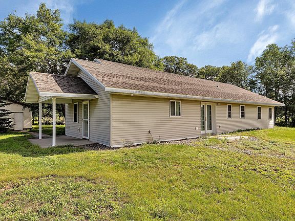 Wonderful patio home on a private 5 acre lot. This quality ICF (insulated concrete forms) home features 3 main floor bedrooms, full master bath w/ double sinks, large living room, in-floor heat, and so much more. Outside you'll notice the large 28X36 heated garage, 54X60 pole shed w/ 15 ft sidewalls. Enjoy the privacy of living in the country with the convenience of being a few minutes from town.
