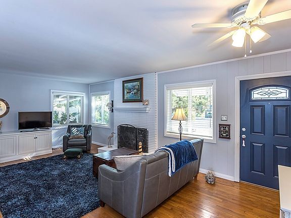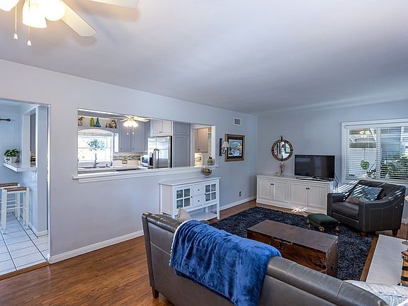 You will be enchanted with this ranch-style charmer! This sunny 3 bedroom, 2 bath single-story home with a spacious backyard has been lovingly remodeled throughout. The 1,294 square foot home features an inviting front yard and circular driveway. Upon entering the home you'll appreciate the beautiful wood floors throughout the living room and bedrooms. Plenty of counter space and storage in the large and sunny remodeled bathroom off the master bedroom. Enjoy hot chocolate in front of the cozy wood-burning fireplace located in the spacious living room. The handsome kitchen has been remodeled with under cabinet lighting, a garden window, tiled backsplash, GE stainless steel appliances, and convenient breakfast bar seating. Step through the french door to the inviting backyard and relax under the custom patio cover with built-in lights and fan. Perfect for entertaining your friends and family. An awesome breezeway has plenty of storage with custom cabinets and access to the practical mudroom. Dual pane windows let in put in plenty of light and are energy efficient. Not to be ignored are the newer heater and air conditioner as well! Enjoy the view of the lush greenbelt from your front porch as well! Centrally located near freeways and shopping yet incredibly quiet, you'll appreciate the rest relaxation this home provides you and your family.