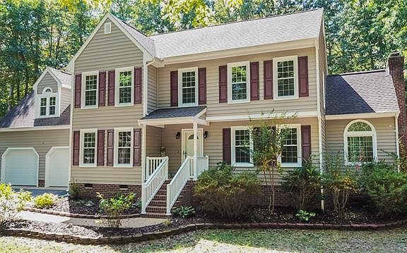 COMPLETELY REMODELED & UPDATED! This beautiful home is located in the sought-after waterfront neighborhood of Sunrise Bluff in Woodake â Voted âBest Neighborhood in Chesterfield Countyâ by Style Weekly readers (Best of Richmond 2019). BRAND NEW KITCHEN with soft-close shaker-style white cabinets and dovetail drawers, granite counters with raised breakfast bar, stainless appliances, and tile flooring. ALL BATHS REMODELED; NEW CARPET with upgraded pad in the family room and upstairs bedrooms; REFINISHED HARDWOOD FLOORS; VINYL SIDING AND WINDOWS; A true TWO-CAR GARAGE; Maintenance-free composite rear deck; and so much more! The ROOF is approximately 10 years old. All skylights feature remote controlled blinds. Neighborhood pier at the end of the street--perfect for fishing or just taking in the spectacular views of the Swift Creek Reservoir. QUICK CLOSE AND MOVE-IN READY!