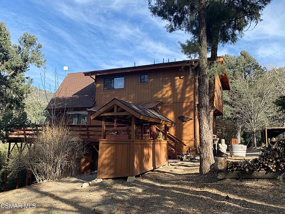 This home has what the locals call... THE BIG VIEW! Simply breathtaking! From the deck you can watch the fog roll in and follow it as it dips down in to the Valley below and winds it's way through the San Emigdio Canyon that rests just beyond the property line. Or... from the Great Room and most every single spot on the deck... you can sit and watch the birds as they grace the tree tops that run along the edge of the wrap around porch. The perfect time of year to be house hunting for a Mountain Home! If this is your Vacation Get-Away or your full time work and learn from home, new home... no need to look any further, you will fall in love with this beauty! Perfectly situated on a 22,651k sqft lot. Everything about this property and home has been thought through with perfection. The homeowners have been calling this place home for 20 years, which means they have made sure all you'll have to do is bring your tooth brush when it's time for you to move in! To enter the home you'll walk along the wrap around deck and then enter into the Great Room where one entire wall is floor to ceiling windows that look out onto the incredible Mountain range and Valley beyond. Next, you will notice, quite possibly, THE MOST beautiful tongue and grove ceilings you may have ever seen! The main level includes the Great Room with a beautiful Red Wood Burning Stove, the perfectly sized Kitchen with it's granite counter tops, Laundry room, 1/2 bath, Master Bedroom and Bathroom. As you make your way up the Storybook Wooden Staircase that traverses the back wall of the Great Room, you are lead to an Open Loft that serves as the Den and Home Office. With Mountain Views from every window and natural light washing in from all sides... this just might be your favorite spot in the house. The top level of the home also has 2 Bedrooms and a Bathroom. But wait, that's not all - there is a Basement! Enter from the Kitchen and down a flight of stairs and... here you are in your own private Family Game Room, Pool Hall, Card Room and Bar for the adults or Video Game hang out spot for the kids. Truly a special space all ready for you to make it whatever your family wants it to be. The beautiful Pool Table stays with the house. And... off the back of the basement, you have a walk-in storage that you will love!!! Home has a Life Source, whole house water filtration system. The wrap around deck does literally wrap around almost the entire house AND... off to one side there is a Pet Entrance which leads to a fenced in yard down below, so your four legged family members can run around outside while staying safe. There is a detached 2 Car Garage just a few short steps from the house. The property itself is like having two lots. So much flat land that you might even want to find out if you could build another home or perhaps an ADU ... might be worth some investigating. Or... there is the simple beauty of having all that space all to yourself and so much room to spread out between you and the neighbors. No one behind you and so much space on either side that you might forget you have neighbors at all! A short drive in to town for the market, pizza, golf, etc... or simply walk out your front door and head out on one of Pine Mountain Clubs favorite hiking trails. So much beauty, peace and tranquility surround this home. If you want to Love Where You Live, this is the home for you!