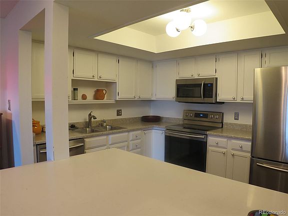 Beautifully updated condo, nestled within sought after Seville at Heather Gardens! Residents in this 6-building enclave enjoy access to a private pool, pickle ball/sports courts and “jacuzzi.” ************************************************************************************************ Shows wonderfully with loads of extras and upgrades! Attractive white cabinets, doors, and trim! Modern plumbing & light fixtures! Luxury, easy care, vinyl flooring, newer paint, double pane vinyl windows/patio door, newer AC units! Big primary suite w/walk in closet and private 3/4 bath! Spacious bedroom/den #2! In unit laundry (washer and dryer included)! Storage closet on same floor plus “cowboy” unit in underground garage! Enclosed lanai with mountain views! ************************************************************************************************ Heather Gardens is an active adult (55+) community that lives like a private resort! Incredible amenities include indoor and outdoor pools, tennis courts, library, fitness center, activity rooms, workshop, classes, clubs, restaurant, auditorium/theater, and much more! 9-hole par 3 neighborhood golf course! Lush, park-like grounds! Adjacent to Cherry Creek State Park with easy access to Nine-Mile Light Rail Station, shopping and all metro Denver via I-225!