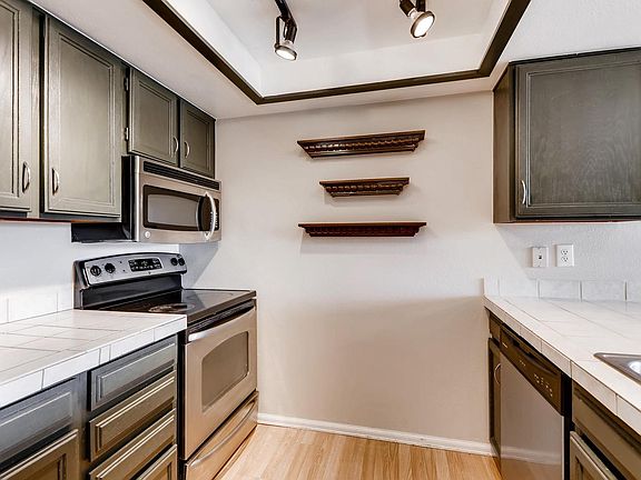 Lovely 1 bed 1 bath condo in the popular Cherry Creek School District. Updated kitchen includes stainless steel appliances, painted cabinets, and tile countertops. Spacious living room with stone wood burning fireplace and new paint throughout. New carpet in hallway and bedroom. The large bedroom has a custom walk-in cedar closet. Newly remodeled bathroom and separate laundry room. Relax on your private balcony! Appletree East is a pool and tennis court community with public transportation, light rail, shopping, grocery, and entertainment around the corner. This condo is in a prime location across from Cherry Creek State Park and has easy access to DTC, DIA & Downtown. Don't miss out on this amazing opportunity!
