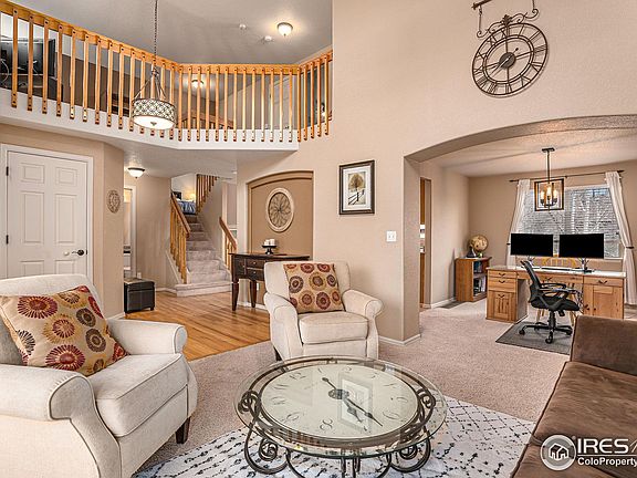 You must see this updated 4 Bedroom, 4 Bathroom, clean and well kept home in the Northbrook subdivision of Thornton with over 3,000 square feet. Pre-inspected! Granite counters in the Kitchen and Bathrooms. Office in the Basement. Large composite deck with iron railings overlooking the manicured and good size back yard. Below features a Covered Patio with stamped concrete and a Walk Out Basement. Newer Light Fixtures, Fans and Hardware throughout. Stainless Kitchen appliances all stay. 5 piece Primary Bathroom with spacious soaker tub. Extra Loft and Flex space upstairs that overlooks the Living Room. Other features include Gas fireplace, Central Air Conditioning, Sprinkler System, Basement Wet Bar, Storage Shed, sizeable Pantry, Newer Gutters and Roof with Impact Resistant Shingles. Easy access to the Airport. Multiple nearby parks including Trail Winds Park and Open Space, Springvale Disc Golf, Northbrook and Homestead Hills.
