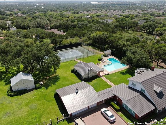 Outstanding Property Located in the Highly Desirable Helotes Park Estates. Includes 2 lots for a total of 1.93 acres, a 3268 SQFT Main House with 4 bedrooms, 2 1/2 Baths, 3 Living Areas. Detached 3-Car Garage. Separate One Bedroom Pool/Guest House with Kitchenette and bathroom. Large Pool with Jacuzzi. 11x7 Pool Shed. Lighted Tennis Court. 27x37 Shop/Hobby Building with A/C Unit. Private Irrigation Well. 23x15 Pump House which houses a Cement Storage Tank and Pump for sprinkler system which covers the entire estate. The Driveway consists of pavers which ties in with the brick of the house nicely. The Main House has Hardwood Oak Flooring in most rooms, Custom Plantation Shutters on most windows. Master Down other 3 Bedrooms Up. Master Bath has Double Vanities and access to the Den. Kitchen has Quartz Countertops, Double Ovens, Electric Cooktop and a Sink Window overlooking the Pool and Tennis Court area. Covered Patio off the Den has Outdoor Kitchen. The largest upstairs Bedroom features a Balcony with Views of the area and Spectacular Backyard. The Pool/Guest house features a Rock Fireplace and Banks of Windows looking onto the Yard on one side and French Doors which open to a Covered Patio which leads to the Pool and Jacuzzi on the other. Retreat to your Own Resort by just stepping out of your back door. Property is convenient to major Shopping and Restaurants. RARE 2 ACRES IN HELOTES PARK ESTATES !!!!