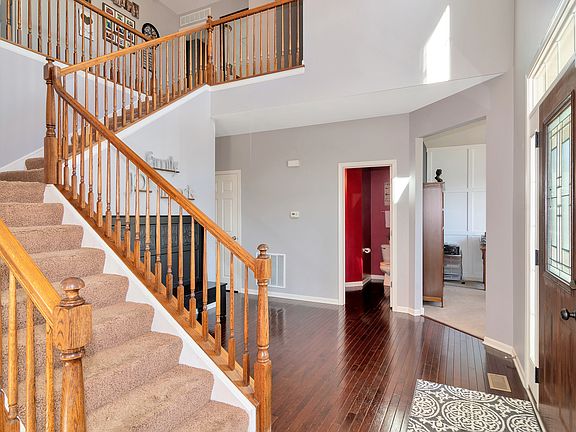 Welcome to this warm & inviting home in much sought after Prairie Knoll subdivision. You'll enter into the large two-story foyer w/hardwood flooring. First floor office/den has newly installed board & batten feature wall. The first floor has fresh new paint throughout. Kitchen has white cabinets, Corian countertops, new tiled backsplash, w/updated appliances in much sought after slate finish. The kitchen features an island w/eat in area which opens to large family room. Laundry room has an updated mudroom closet. Dining room features newly installed wainscoting & new chandelier. The fenced in backyard has brick paver patio, fire pit & pergola w/outdoor light great for entertaining. The upstairs has 4 bedrooms & features a large bonus room perfect for second family room, kids' playroom, exercise room, or media room. Master bedroom with on suite features 2 WIC, new bathroom flooring, lighting, soaker tub, separate shower, water closet, & double sinks. New interior paint (2022), new Dishwasher (2022), Other kitchen appliances (2020) all new exterior lighting (2022), All new bathroom lighting (2022), New roof and A/C (2019), new front door (2020), garbage disposal (2019) water heater (2016). Walking distance to elementary, close to shopping, restaurants & Rt. 59. This one won't last!