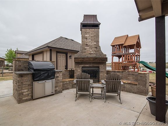 Enjoy the breathtaking sunset! Conveniently located between Tulsa and Bartlesville. 4/3/3 home w/outdoor fireplace. Second Garage w/storm shelter. Hardwood floors, office and 4th bedroom (with bath) can be used as a game room or second living area.