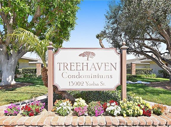 Run, don't walk to see this gorgeous remodeled two bedroom condo! Located in the Tree Haven Condominium Community of North Tustin, you will not be disappointed with this one. As you enter, you are greeted by the beautiful stacked stone fireplace and tiled flooring. The kitchen has been tastefully remodeled with upgraded cabinetry, counter tops and newer appliances. Down the hall to the master bedroom, you will be able to enjoy the natural light that shines through the double door entry to the backyard. Connected to the bedroom is a roomy master bathroom and closet area. In both bedrooms, is newer laminate flooring for modern touches to this already upgraded home. The backyard area has its own washer and dryer area with stylish cover up. For this particular unit, parking is a breeze. You will one space of a two car garage with direct access. Many units do not have the direct access making this unit very desirable. The community is well maintained and features a pool for the upcoming Summer season. Don't let this one get away!