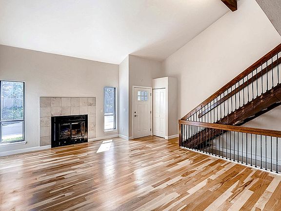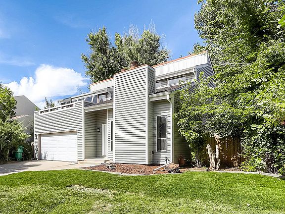 Fantastic remodeled home in the coveted Cherry Creek Racket Club neighborhood. Cherry Creek Schools! Every home in this neighborhood was designed around the use of passive solar. Incredibly efficient with multi-pane storm windows that seal the house up tight. Newer roof and siding. The open floor plan with vaulted ceilings and exposed beams greet your from the front door. Gleaming hardwoods throughout the main floor. New kitchen cabinets with soft-close drawers and slab granite complete with newer stainless appliances. The main floor bedroom is serviced by the adjacent 3/4 bath. The upstairs boasts two master bedrooms each with its' own bathroom and walk-in closet. Enjoy the sun room off the upper west bedroom or walk out onto the private second floor deck. The basement is also finished and is home to another spacious bedroom and great room. The park-like back yard complete with large stamped concrete deck will make you never want to leave home. Please see this gem today.