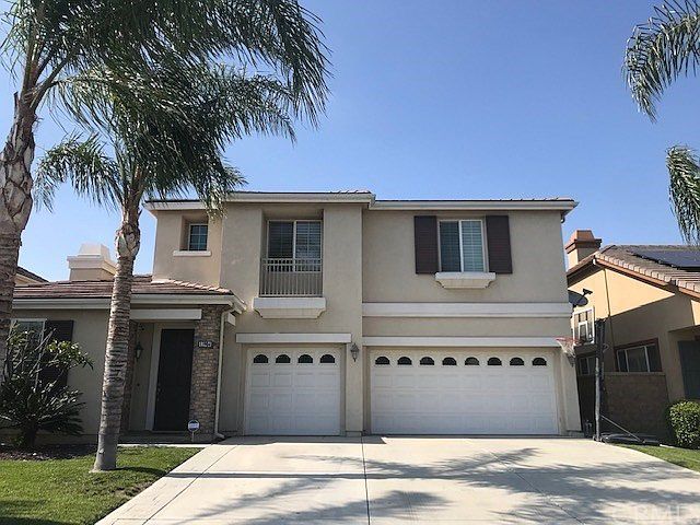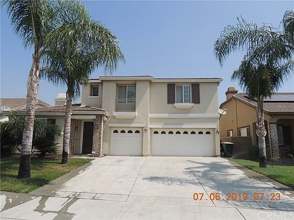 Gorgeous luxury Pulte Home, great floor plan with courtyard, 6 bedrooms & 3.5 baths. 2 bedrooms and 1.5 baths downstairs, Library & living room with two way fireplace, beautiful open kitchen with granite countertops, island and plenty of cabinets for storage, open to the family room, with fireplace and access to the downstairs 2 bedrooms and one full bath. Two stories high ceiling formal dining room open to the courtyard. Plantation shutters and ceiling fans throughout. Carpets and tiles throughout. Master suite showcases and inviting bedrooms with his and her separate walk-in closets. Master bath has separate sinks and vanity, separate glass enclosed shower and a large Roman tub. Upstairs laundry room has a sink and cabinets. Fully finished 3 car garage, dual A/C. Fully landscaped front yard with the beautiful palm trees. Perfect backyard and courtyard are good for entertaining friends and families. Close to park, schools and market. Easy access to freeway 15, 60, 71 and 91. It's a perfect home for you to see and own. Rush!!!! it won't stay long.